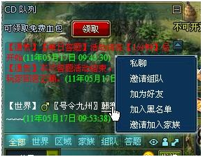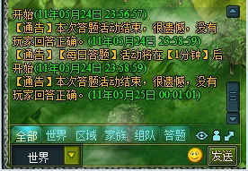 聊天頻道分為可切換的6個窗口,分別是:1、全部,2、世界,3、區(qū)域,4、家族,5、組隊,6答題;
