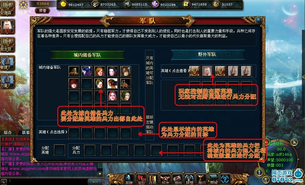 兵力分配流程:點擊軍隊——選擇需分配兵力的英雄頭像——將要分配的兵種拉入分配兵力欄——確定需要分配的數(shù)值—完成分配。