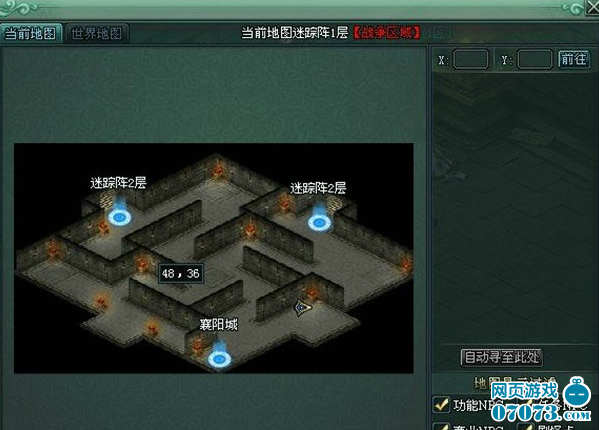 進(jìn)入副本后面臨岔路口的選擇,可選擇向左或者向右,陣法中央有低等級怪物把守,從中間走必然需要戰(zhàn)斗,可選擇從邊緣路線跳躍過墻的方法,這樣速度最快,所以備足恢復(fù)體力的藥物是根本;怪是打不完的,我們現(xiàn)在最重要的是趕路,只要進(jìn)入2 層的目的達(dá)到了,其他小怪并不是我們的“菜”。哪個是正確的下一層入口,并沒有任何提示,全憑運氣,也就是“蒙”!于是我隨便選擇了向左,沒想到真的就進(jìn)入了迷蹤陣二層。