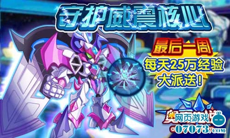 最極限的攻擊!最爽快的戰(zhàn)斗!每天25萬經(jīng)驗瘋狂大派送!守護(hù)威震核心,僅在周五周六周日三天哦!精彩的戰(zhàn)斗,還能獲得碎空終結(jié)者模型,碎空紋章,碎空紋章能兌換超強(qiáng)機(jī)甲戰(zhàn)士——碎空終結(jié)者哦!最后一周,機(jī)會不容錯過,快來守護(hù)威震核心吧!