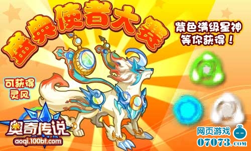 盛典大賽開始啦!一起來參加盛典大賽吧!參加大賽,成為盛典使者,就能成為強(qiáng)寵靈風(fēng)的主人哦!還有吸引人的獎(jiǎng)勵(lì)等著你呢!只要每天完成3次靈風(fēng)的考驗(yàn),就能免費(fèi)為你的紫色星神升到滿級(jí)哦!