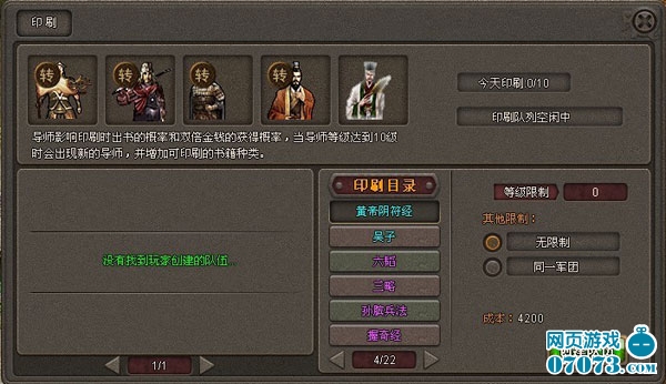 當(dāng)玩家主城等級達(dá)到40級時,可以在軍機(jī)處的書院界面進(jìn)行組隊(duì)的書籍制造來換取極品書籍或資金。