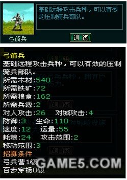 擁有一只強(qiáng)大的軍隊(duì)一直是《霸王大陸》中每一個(gè)玩家的終極夢(mèng)想。在游戲中玩家可以制造三大類的兵種,包括步兵、弓兵和騎兵。在這三個(gè)兵種中,弓兵可以算是性價(jià)比最高的兵種了,雖然沒(méi)有步兵的靈活,騎兵的速度,但弓兵的攻擊范圍卻遠(yuǎn)遠(yuǎn)高于另外兩個(gè)兵種。