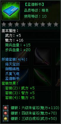 這是咱們大耳劉皇叔的套裝,對(duì)應(yīng)級(jí)別很低。附加屬性很給力!當(dāng)這套裝備搭配上該系列的其他裝備時(shí),會(huì)觸發(fā)相應(yīng)的隱藏屬性。