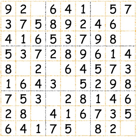 數(shù)獨(dú)的基本規(guī)則是:在每行、每列及每宮(黑線區(qū)分的3X3區(qū)域)內(nèi)填入不重復(fù)的數(shù)字1-9。