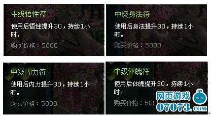 身輕如燕的奶媽需要的--身法符:使用后身法提升30,持續(xù)一小時(shí)。