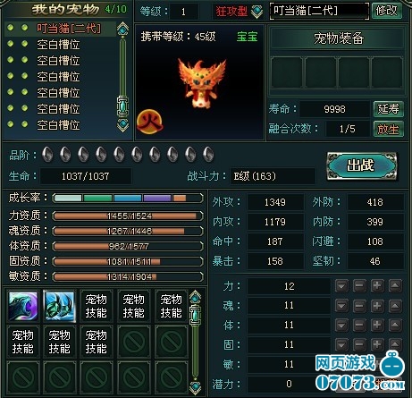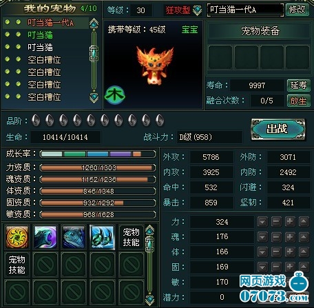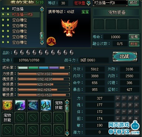 由上圖可以看見,叮當(dāng)貓二代的資質(zhì)比起一代力資質(zhì)1260和1271,高出了很多。整體資質(zhì)也有所提高。