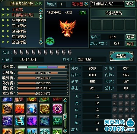 2、合成出來的寵物資質(zhì),是以兩個(gè)寵物的各項(xiàng)資質(zhì)的平均值為基礎(chǔ)提升的,所以合成過程中,不能將主要寵物和與之資質(zhì)相差太大的其他寵物進(jìn)行融合,比如拿叮當(dāng)貓3代和小草精1代進(jìn)行融合,這樣得到的叮當(dāng)貓4代的資質(zhì)數(shù)值不會(huì)很好,5項(xiàng)資質(zhì)無(wú)法兼顧的時(shí)候,一定要保證主要資質(zhì)數(shù)值一定要高。