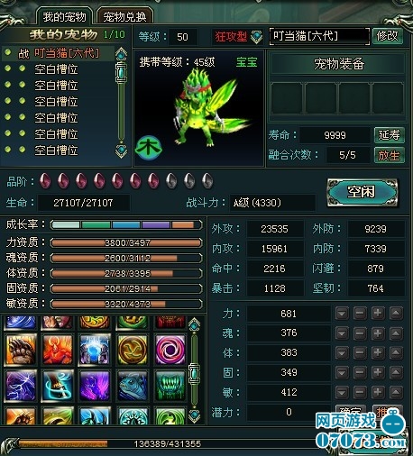 1、合成極品寵物,必須一代還童資質(zhì)較好