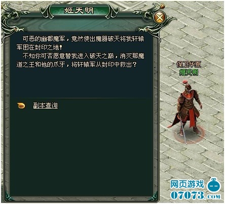 固定時間刷新的進入npc姬天明,選擇副本查詢,點擊進入