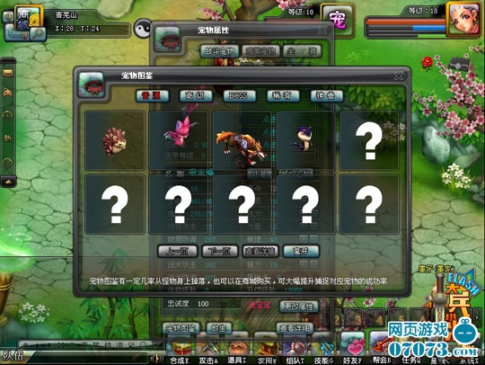 玩家打開寵物屬性界面,點(diǎn)擊“寵物圖鑒”按鈕,即可查看擁有哪些寵物的圖鑒。