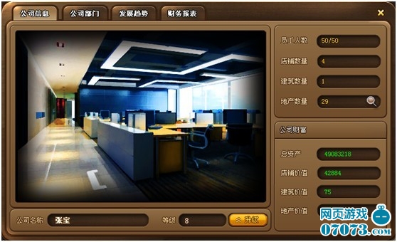 2. 公司管理:查看當(dāng)前公司的基本信息,對(duì)公司部門(mén)進(jìn)行管理、查看公司發(fā)展記錄以及公司收支情況。