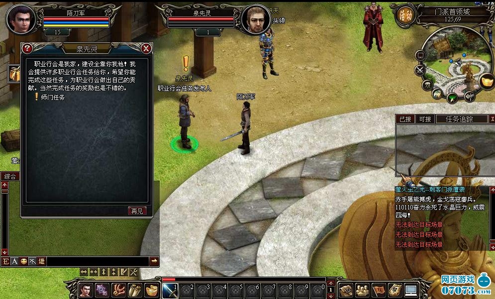 角色等級達到13級,在門派首領(lǐng)城中與NPC泉先靈進行對話,領(lǐng)取師門任務(wù)