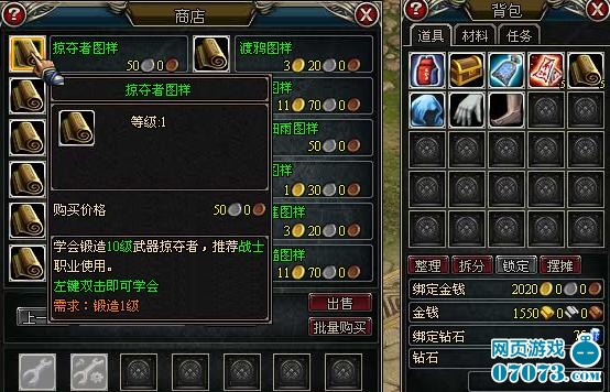 在導(dǎo)師的商店中可以購(gòu)買配方和部分鍛造材料,購(gòu)買圖樣后雙擊使用,就能學(xué)會(huì)這種裝備的制作