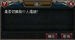 個(gè)人混戰(zhàn),組隊(duì)混戰(zhàn),幫派混戰(zhàn)模式互相轉(zhuǎn)換時(shí),也會(huì)彈出一個(gè)讓玩家確認(rèn)的對(duì)話框,玩家點(diǎn)擊確認(rèn)后立即切換到該P(yáng)K模式。