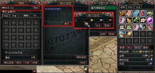 玩家在彈出的擺攤窗口中可以更改攤位名,攤位信息,當(dāng)玩家選擇想要出售的寵物或者將背包中的物品拖入到擺攤物品欄中時(shí),會(huì)彈出輸入金錢的窗口,在其中輸入價(jià)格,點(diǎn)擊確定就可以將物品或是寵物上架。