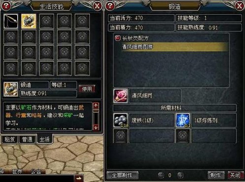 選擇鍛造,點擊使用,可以看到剛剛學(xué)習(xí)的配方,點擊配方名稱,可以看到所需材料。玩家攢齊所需的材料,點擊制作,就可以制造出物品了。