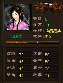 悟性——武將的屬性,武將的悟性分白、綠、藍、紫四種級別,悟性影響所有屬性的增加。