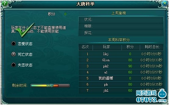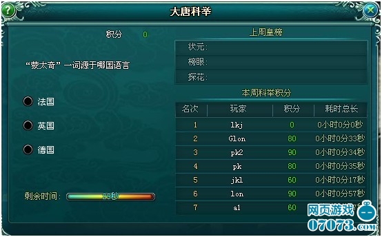 每周末會(huì)根據(jù)積分選出狀元、榜眼、探花等名次,名次和玩家完成的時(shí)間以及答題的準(zhǔn)確率有很大關(guān)系。