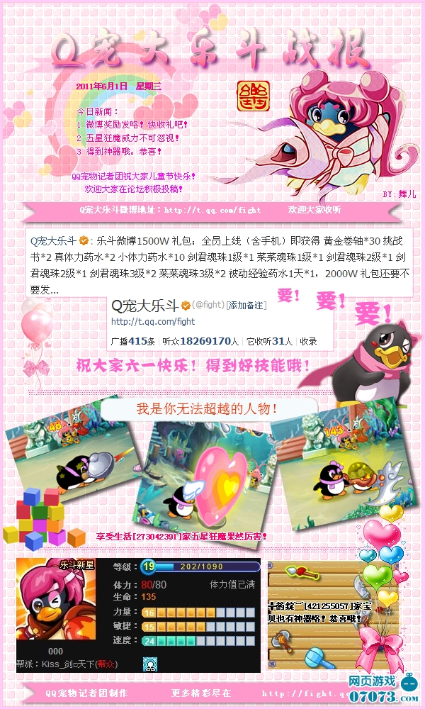 游戲大廳 > 休閑競技 > Q寵大樂斗 > 新聞公告 > Q寵大樂斗戰(zhàn)報2011年6月1日版
