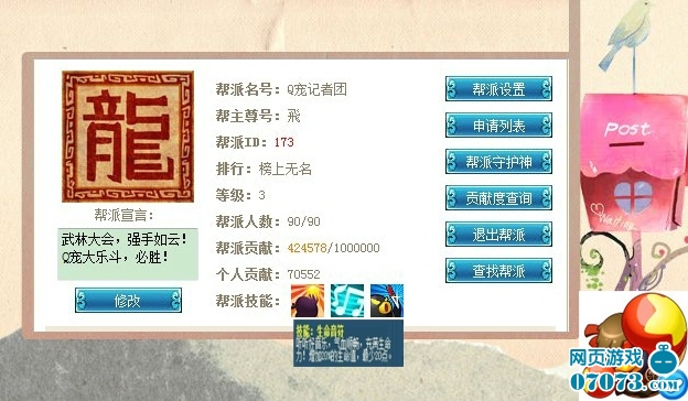 Q寵大樂斗可玩之處頗多,這里著重介紹一個講究團隊的幫派體系。