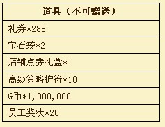 活動期間,店鋪點獲取速度提升一倍,公司升級更爽快!歡樂節(jié)日,愉快游戲!