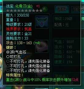 非仙勿擾藍玉腰帶、化骨刀裝備特殊技能屬性,當然這些屬性都是靠著強化石強化的,至少這款游戲還是有可玩的地方的,喜歡的一起來挑戰(zhàn)吧!
