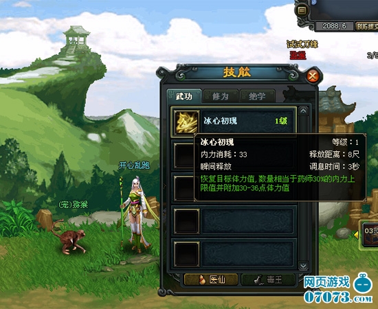 目前,游戲開放的職業(yè)共有三種,分別是刺客、俠客、藥師這三大職業(yè)。由于,本人好奇心比較重,而且還很博愛,所以,這三個(gè)職業(yè)都練了。