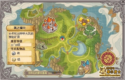 現(xiàn)在,摩爾勇士的地圖增加了小功能,只要小勇士們把鼠標(biāo)移動(dòng)到地圖的某個(gè)區(qū)域上面,就會(huì)顯示出這個(gè)區(qū)域的資料。其中就有可采集物品的選項(xiàng)。例如,西野哥哥把鼠標(biāo)放在風(fēng)之洞穴上,顯示風(fēng)之洞穴有鐵、鋁兩種資源可以進(jìn)行采集。利用這個(gè)方法,小勇士就可以更方便的收集資源了。