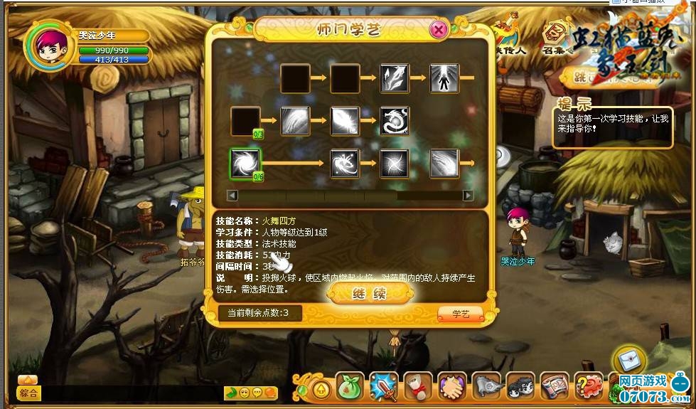 七.拜師成功后根據(jù)系統(tǒng)要求點(diǎn)擊學(xué)藝,學(xué)習(xí)技能從此就可以正式成為長虹劍的傳人,但是要注意技能點(diǎn)升完就不可在學(xué)習(xí)技能了哦!