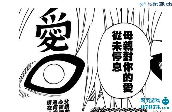 在鳴人進行控制九尾查克拉訓練的時候,我們終于目睹了鳴人母親的芳容。在母子兩個深情的敘述和嘮嗑中,我們明白了鳴人親愛而媽咪之所以英年早逝,主要原因就是幫鳴人擋下了九尾的爪子,救了鳴人一條小命,間接為火影忍者這部動漫的連載做出了不可磨滅的貢獻,向我們展現(xiàn)了一幅偉大母愛的畫卷……