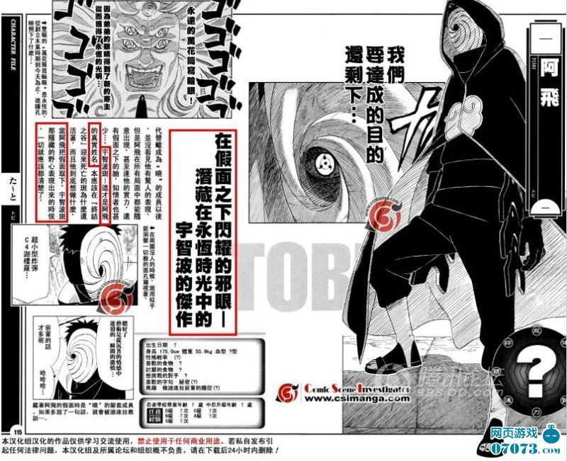 目前為止,者之書中大量的證據(jù)表明官方認(rèn)可面具男就是斑,忍者之書沒有被劇情中推翻過,相信作為官方的資料,今后也不會(huì)被推翻,在大量者之書的定義下,應(yīng)該也無法自我推翻。我認(rèn)為這就有力的詮釋了面具男的一個(gè)問題,那就是面具男應(yīng)該還是斑!但絕不是斑的本體。