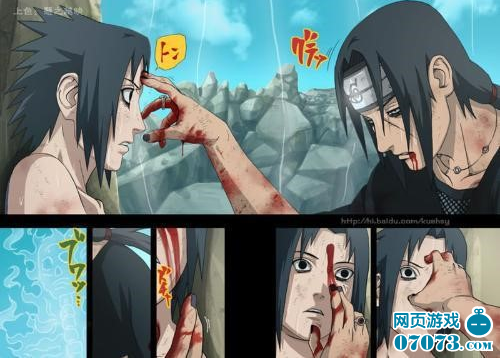 10.特別推薦:佐助靠墻,身體不能動,眼睜睜地看著哥哥的手伸過來,然而手指并未挖走他的寫輪眼,而是----輕點了他的腦門(感動指數(shù)-五星):