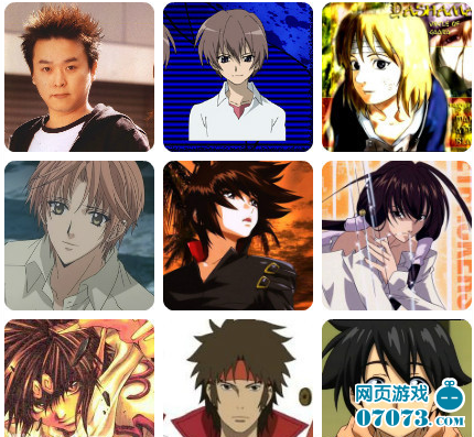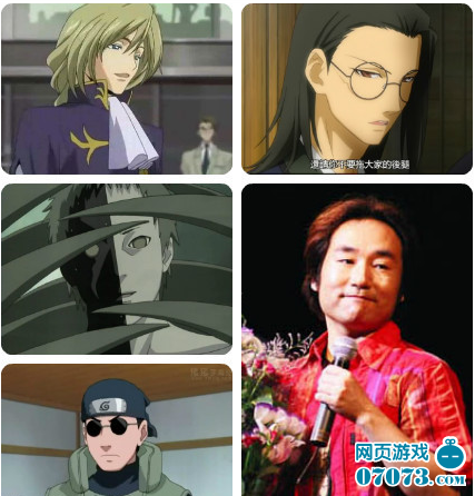 CV:石川英郎《火影忍者》——宇智波鼬;《死神》——浮竹十四郎;《金色琴弦》——金澤纮人;《灌籃高手》——森重寬