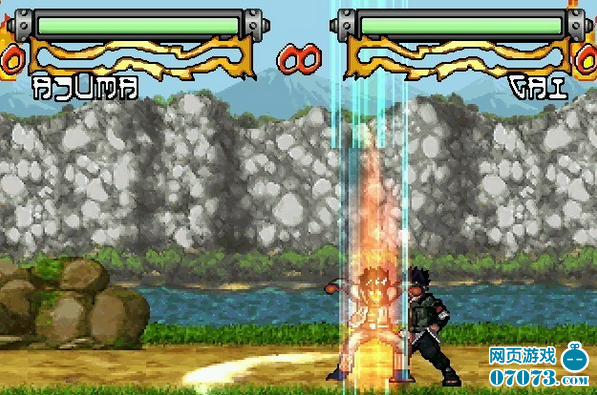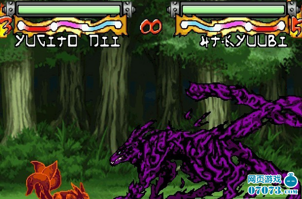 戰(zhàn)斗按 空格鍵 可以滿血滿查克拉,這時候自己可以研究研究發(fā)絕招....