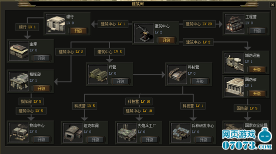 3) 建筑間的建造順序可以通過點(diǎn)擊建筑中心里的建筑樹按鈕進(jìn)行查看。在建筑樹中可以快捷升級(jí)建筑。