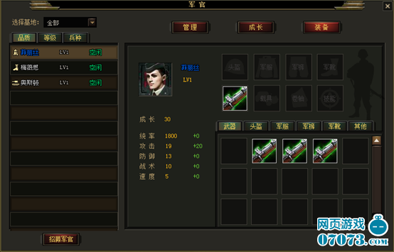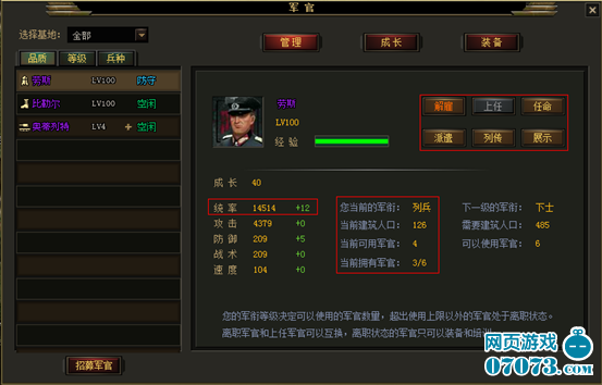 4) 離職的軍官不能參與戰(zhàn)斗,只能培訓(xùn)。當(dāng)然玩家可以通過離職/上任按鈕管理自己的軍官隊(duì)伍,輪換使用自己的軍官。