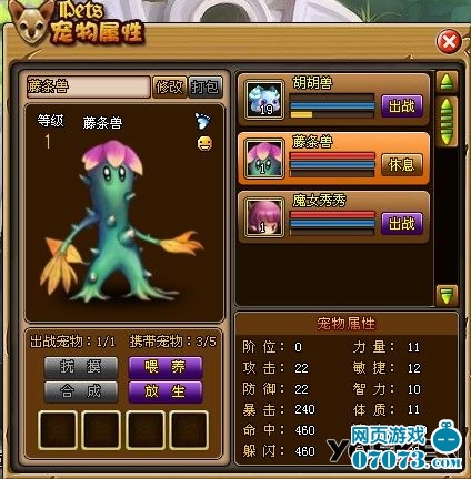 寵物推薦:藤條獸是唯一升級漲敏捷的寵,還不漲智力,每升1級漲:1力1體2敏)