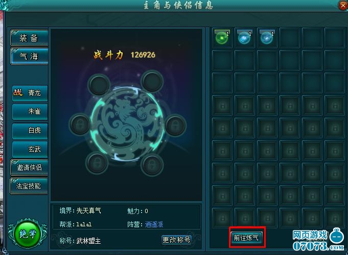 玩家可通過點擊氣海的前往煉氣按鈕(如:圖6)或煉氣圖標(biāo)前往煉氣(如:圖7)。