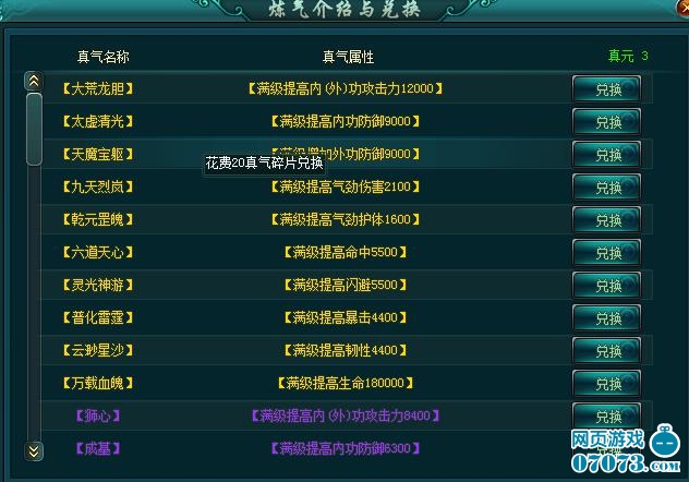 4)玩家在煉氣時有幾率獲得真元,真元可以兌換各種品質(zhì)真氣。如:圖10