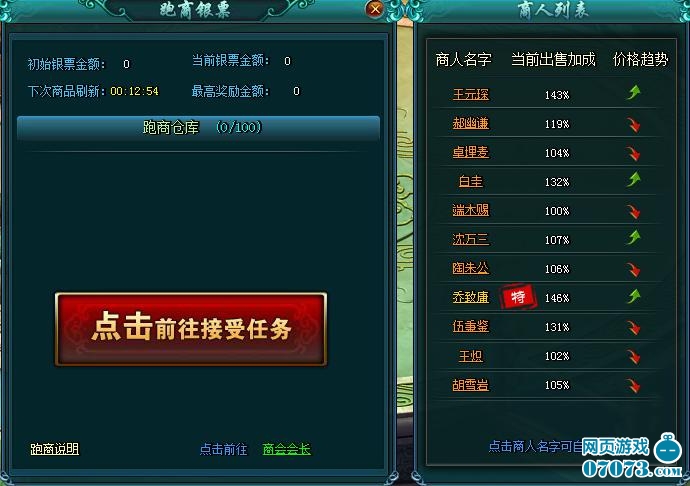 7、玩家可隨時找商會會長提交銀票,完成此次跑商任務(wù),按比例領(lǐng)取獎勵。