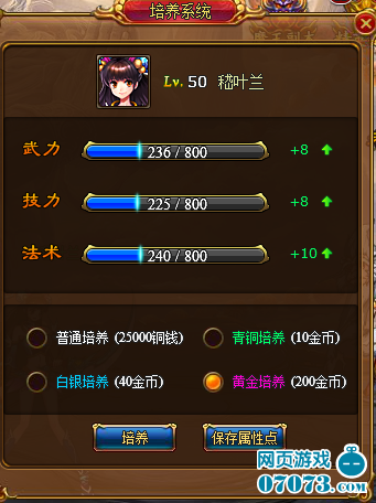 培養(yǎng)之后人物的武力、技力、法術(shù)都會得到提升,如果覺得培養(yǎng)的效果好,別忘記保存屬性點。