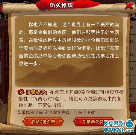 在閉關(guān)修煉狀態(tài)下,每掛機累計在線時間達到1小時,獲得悟性值2點。悟性值可以在【閉關(guān)修煉兌換】中,兌換豐厚獎勵。