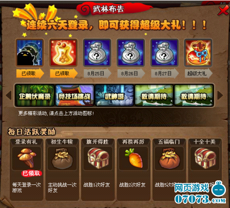 3. 更新每日簽到贈(zèng)禮包功能,玩家連續(xù)6天登錄,即可獲得可觀數(shù)量的游戲道具;從QQgame大廳進(jìn)入游戲獲贈(zèng)更多!!