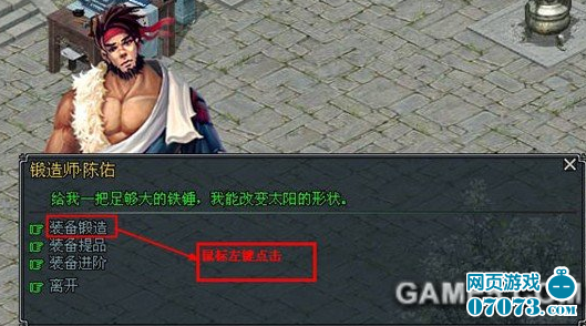 1、玩家在揚(yáng)州城找到NPC鍛造師?陳佑,鼠標(biāo)左鍵點(diǎn)擊對話窗口,點(diǎn)擊裝備鍛造按鈕,如下圖: