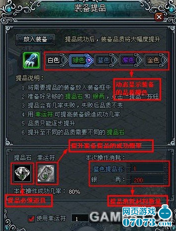 裝備提品的品質(zhì)越高,提品的成功率越低。