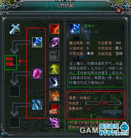 3、 玩家的角色等級(jí)必須不小于技能升級(jí)所需的角色等級(jí),才能對(duì)技能進(jìn)行升級(jí)。