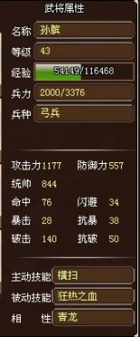 既然孫臏作為青龍的主攻手,那么在屬性培養(yǎng)方面,攻擊自然是主要的培養(yǎng)對(duì)象,其次是統(tǒng)帥,而作為孫臏最弱的防御來說,就盡量通過和其他武將的配合來達(dá)成,當(dāng)然,也同樣是要洗的。這里建議最好至少洗到300+。