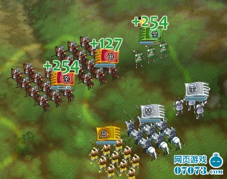這時候的部隊,只有三支隊伍組合。而在這三支隊伍中,申不害的部隊有兩個騎兵,而這兩個騎兵的主動技能,都是我們在后期都覺得非常牛B妙手回春。