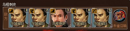 我們看到,烏程刺史的隊伍2步兵+2騎兵+1弓兵,并且騎兵分別安插在步兵和弓兵之間,這就導致在布陣的時候很郁悶。首先信陵君復制對方的妙手回春,這一點毋庸置疑。然后用弓兵擊破對方的弓兵,呂不韋對付火攻部隊。由于兵種相克,琴清不能對應剩下的步兵,所以只能和騎兵對陣,而這個時候,如果是玄武召喚,則剩下趙姬,如果是白虎召喚,則剩下龐涓。但無論哪一個,他們的位置都在最左側(cè)。